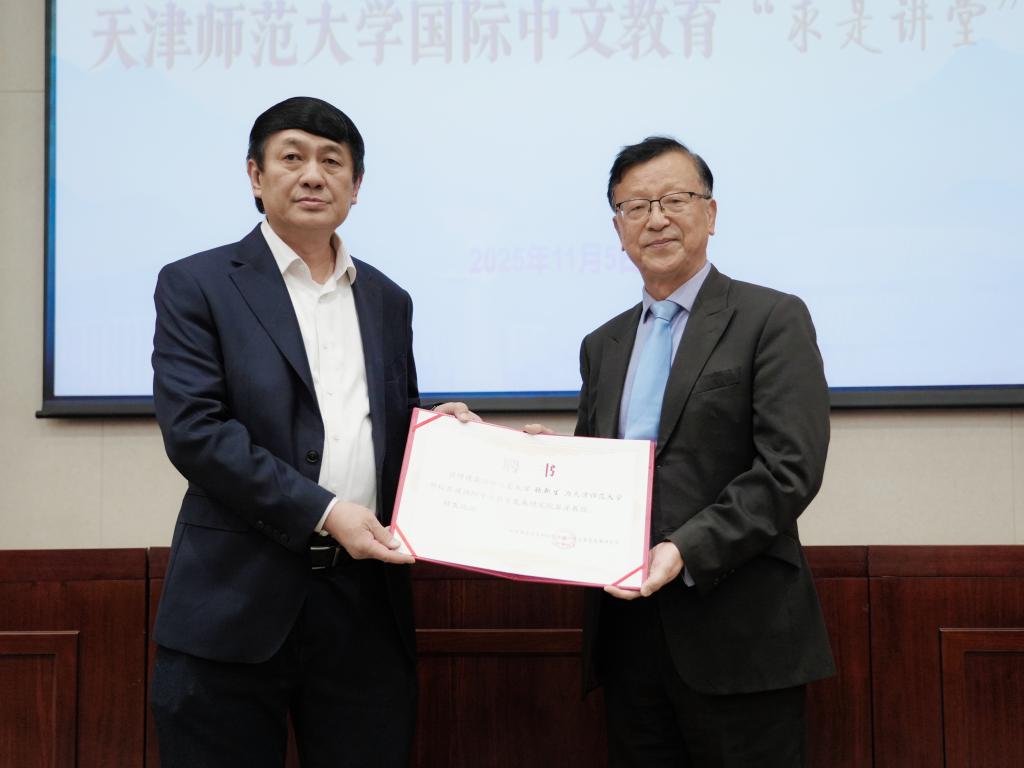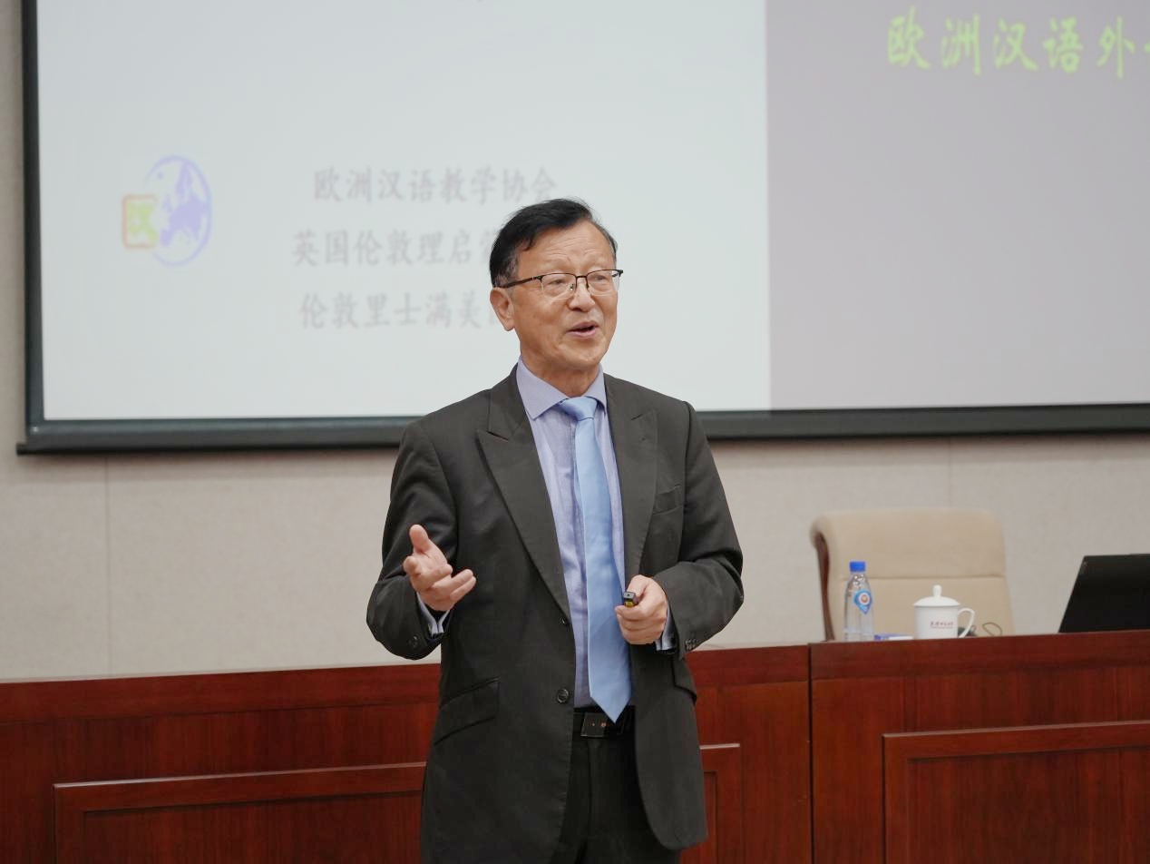 1月5日下午2:30,英国理启蒙大学荣誉教授、英国特许语言学家协会荣誉会员、世界汉语教学学会副会长兼欧洲汉语教学协会会长张新生博士应邀来校,作客我校国际中文教育“求是讲堂”,作题为“国际中文教育和欧洲汉语外语教学”的主旨学术报告。世界汉语教学学会会长、我校部校共建国际中文教育发展研究院院长钟英华向张新生教授颁发部校共建国际中文教育发展研究院客座教授聘书,并主持报告会。我校相关学院师生200余人参加。
