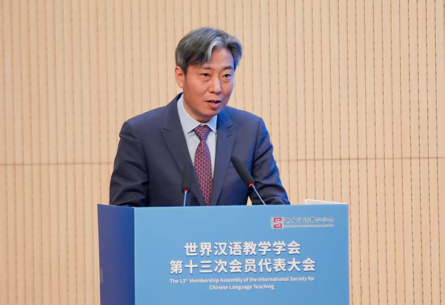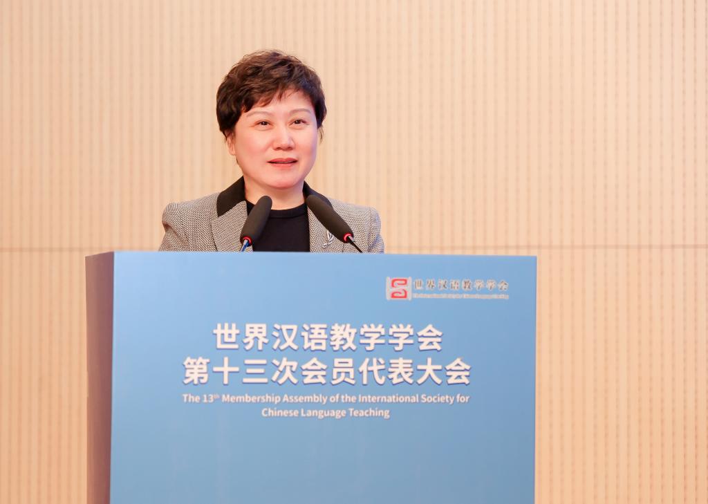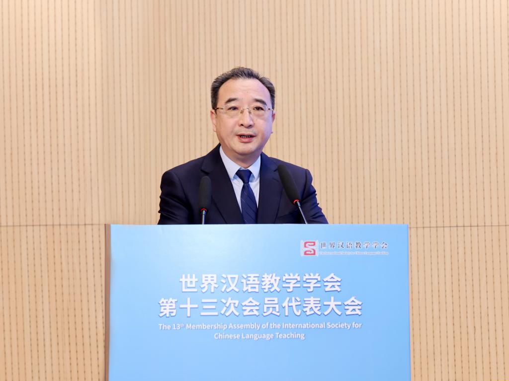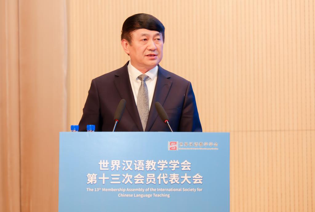 郁云峰在致辞中表示,世界汉语教学学会作为国际中文教育领域最具影响力的学术组织,有效凝聚各国中文教育专家学者和一线教师,为推动国际中文教育学科建设、学术繁荣和人才培养,助力国际中文教育事业高质量发展,作出了独特重要贡献。自学会第十二次会员代表大会召开以来,学会秉承服务师生、服务学术、服务事业、服务社会的理念,开拓进取,守正创新,取得了令人瞩目的成绩。希望学会全体同仁继续聚焦学科体系完善,推动数智化转型研究;创新人才培养模式,破解本土师资短缺难题;深化国际合作,构建全球协同网络体系。